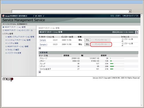 アプリケーションのライセンスの状態が「未インストール」の場合、アンインストールできます。アプリケーションのライセンスの状態が「未インストール」ではない場合は、ライセンスファイルを無効化して、削除したあと、アンインストールできます。(→アプリケーションのライセンス管理をする)