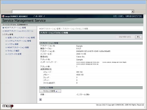 表示されるアプリケーションの詳細情報は、アプリケーションによって異なります。