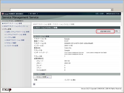 [削除]をクリックすると、認証情報の設定を解除します。