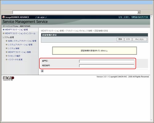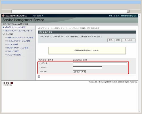 認証情報の設定を行うには、本体で[SSLを使用]を「ON」にする必要があります。[SSLを使用]の設定については、「Webブラウザーから本体にアクセスできるようにする」を参照してください。