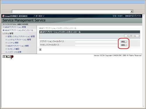 ライセンス管理システムにアクセス後、画面に表示される指示に従ってライセンスファイルを取得してください。ライセンスファイルを取得するには、ライセンスアクセス番号およびデバイスシリアル番号(SMS画面上の左上に表示される番号)が必要です。