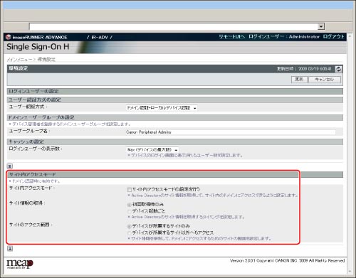 <サイト内アクセスモード>の設定を行っている場合でも、Webブラウザーからのログインではサイト情報の取得を行いません。