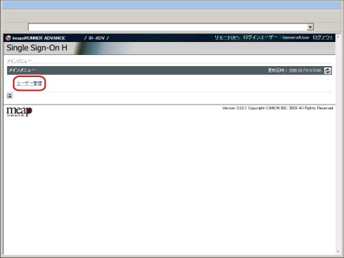 一般ユーザーがSSO-Hにログインすると表示される項目です。