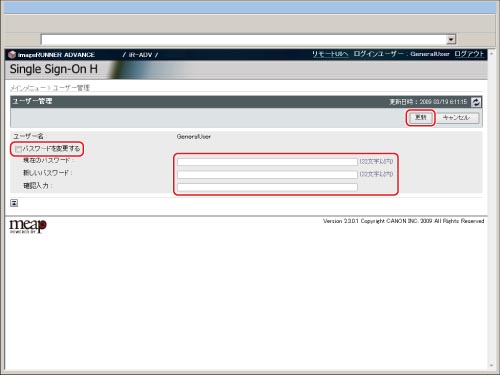 ローカルデバイス認証の一般ユーザーは、自分自身のパスワードを変更できます。これによって、ユーザーの個人情報のセキュリティーを高められます。管理者ユーザーは、一般ユーザーにパスワードの変更ができることをお知らせください。