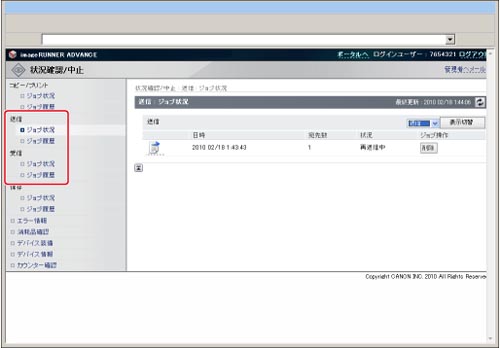 [ジョブ状況]→削除するジョブの[削除]をクリック
