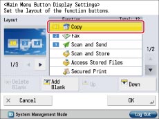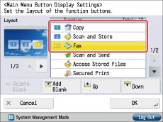 This section describes how to set the three types of keys: [Copy], [Scan and Store], and [Fax] to display on the touch panel display in that order.