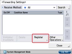 Select the registered forwarding condition → press [Validate/Invalidate].