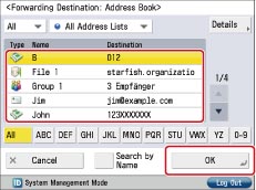 Select the fax number for the office B registered in step 2 → press [OK] → [Next].
