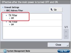 Press [MAC Address Filter] → [TX Filter].