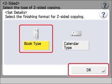Select [Book Type] → press [OK] → [OK].