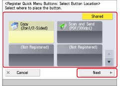 If you register frequently used function settings such as Copy, Scan and Send, and Scan and Store in the Quick Menu, you can also use those settings on another machine.