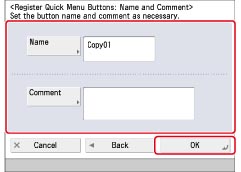 Follow the procedure below to enter a button name and comment.
