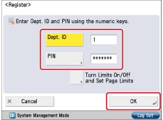 Select [Allow PIN Setting] → enter the Department ID and PIN that you entered in step 4.