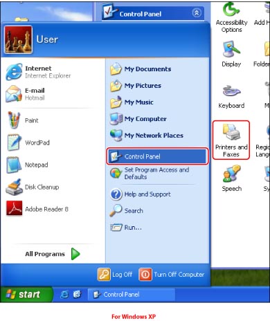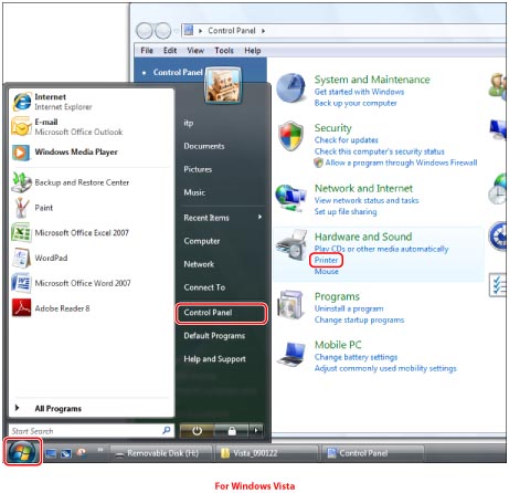 Follow the procedure below to select [Printer] or [Printers and Faxes].