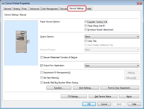 By specifying the print settings in the printer driver screen on the Control Panel, instead of in an application, you can register the settings as the default settings. Follow the procedure below to display the printer driver screen from the control panel.