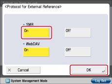 Select [On] for [SMB] → press [OK] → [OK].