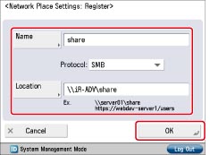 Settings for Using an Advanced Space on the Network (Specified by an Administrator for the Machine to Open):