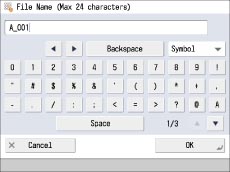 Follow the procedure below to enter the name for the file.