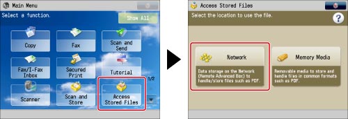 Press [Access Stored Files] → [Network].