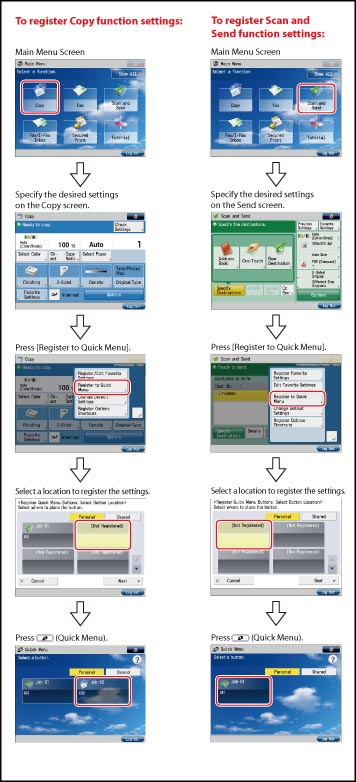 Details of how to register settings in a Personal button/Shared button are described in "Registering a Personal Button/Shared Button," using the Scan and Send function as an example.