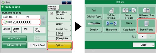 This mode enables you to remove the shadows and lines that appear when scanning various types of originals. There are three types of erase frame mode, [Erase Original Frame], [Erase Book Frame], and [Erase Binding].