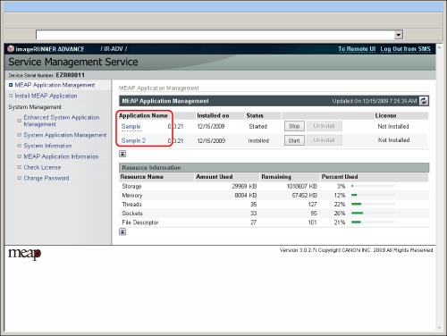 Click [MEAP Application Management].
