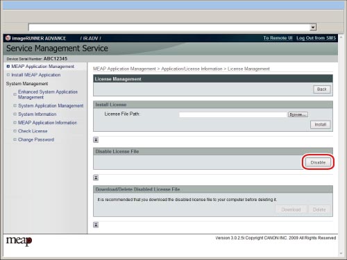 To delete a license file, depending on the license file, it may be necessary to download the file after disabling it.
