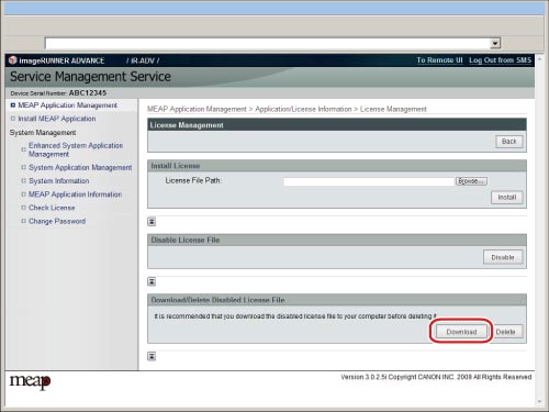 Once you have deleted the disabled license file, you cannot download it from the machine.