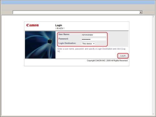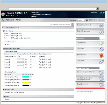 To log in from the Remote UI Portal, set [Remote UI] in [Management Settings] (Settings/Registration) to 'On'. (See "Before You Start the Remote UI.")