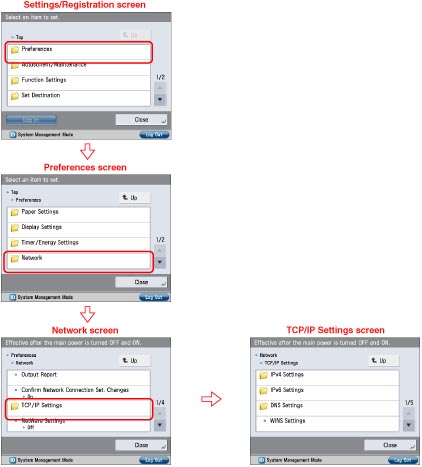 Settings specified from the control panel become effective after the machine is restarted, after the procedure. Turn OFF the machine, wait at least 10 seconds, and then turn it ON.