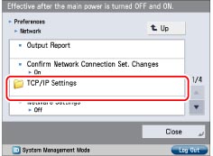 Press [Preferences] → [Network] → [TCP/IP Settings].