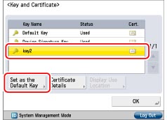 Select the key pair you want to use for SSL encrypted communications → press [Set as the Default Key] → [Yes].