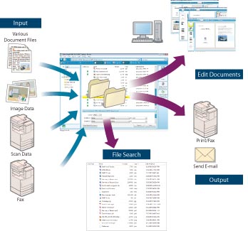 imageRUNNER ADVANCE Desktop, a core software program among the component products of imageRUNNER ADVANCE Essentials, is an integrated document management application that is capable of importing, editing, printing, sending, storing and managing documents.