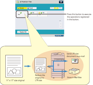 For example, you can scan an LGL original and reduce it to LTR size, and then send it to a customer via e-mail; all with the press of a button.