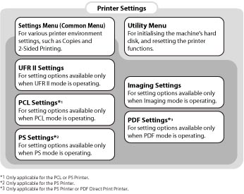 UFR II/PCL/PS Settings Menus