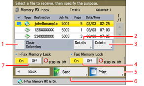 Press to turn the I-Fax Memory Lock mode 'On' or 'Off' for the Memory RX Inbox.