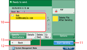 Press to set useful send functions, such as sending different sized originals together, or sending two-sided originals.