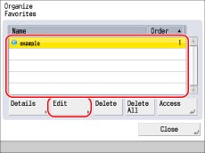 Select [Name] or [Order] to sort the Favorites list in ascending or descending order.