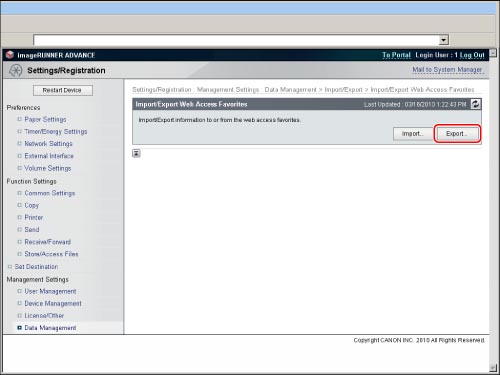 The list of registered Web pages is exported. It is not possible to export individual Web pages.