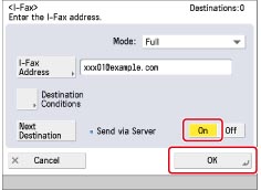 Press [Destination Conditions] → set the recipient's condition → press [OK].