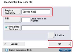 Press [Set Fax/I-Fax Inbox] → [Set/Register Confidential Fax Inboxes].