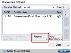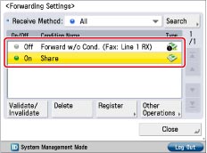 Select the registered forwarding condition → press [Validate/Invalidate].