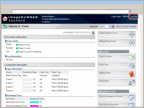 For information on the Remote UI system requirements and preliminary steps to launch the Remote UI, see "System Requirements," and "Before You Start the Remote UI."