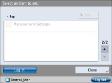 When you finish specifying the settings, press [Log Out] at the bottom right of the screen to log out.