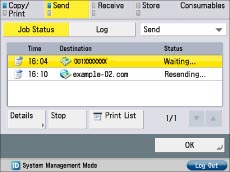 If you set [Send], [Job Status], [Send] as the Default Screen (Status Monitor/Cancel):