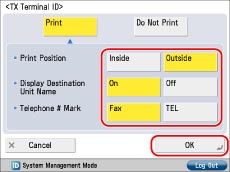 When using the Fax function with the Remote Fax Kit, TX Terminal ID uses the setting of the remote fax server when sending faxes.