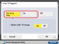 If [TX Report] in [Function Settings] (Settings/Registration) is set to 'For Error Only' or 'On', a Send TX