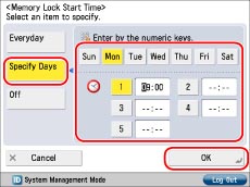 You can select [Everyday] for Memory Lock Start Time and [Specify Days] for Memory Lock End Time, and vice versa.