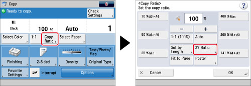 If you set [Auto XY Ratio], select a paper size manually. If you do not specify a paper size, the copy ratio is set to match the size of the paper loaded in paper drawer 1.