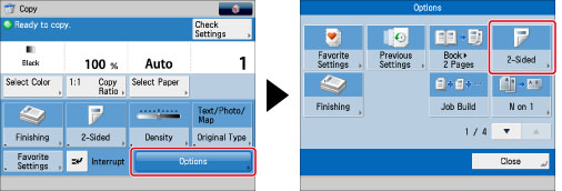 When placing your originals on the platen glass to execute 2-Sided to 2-Sided copying, follow the instructions displayed on the screen to scan each side of the originals.